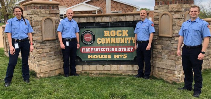 This morning, four new firefighters began their careers at Rock Community. The new firefighters are Brandon Ham, Chris Johnson, Lane Carl and Jacob Laurrel. Welcome to the family!