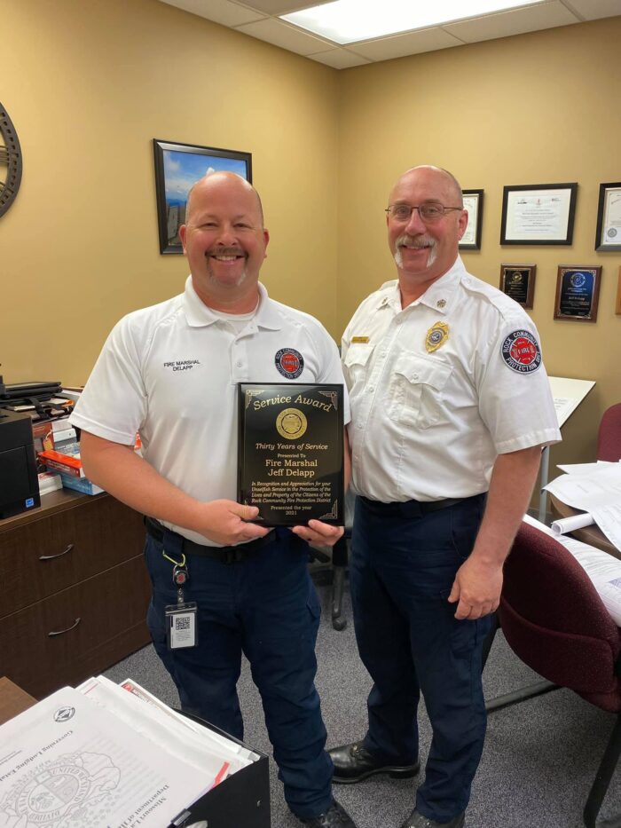 We would like to say congratulations to Fire Marshal Jeff DeLapp on 30 years of service to Rock Community. Thank you for your service to our community.