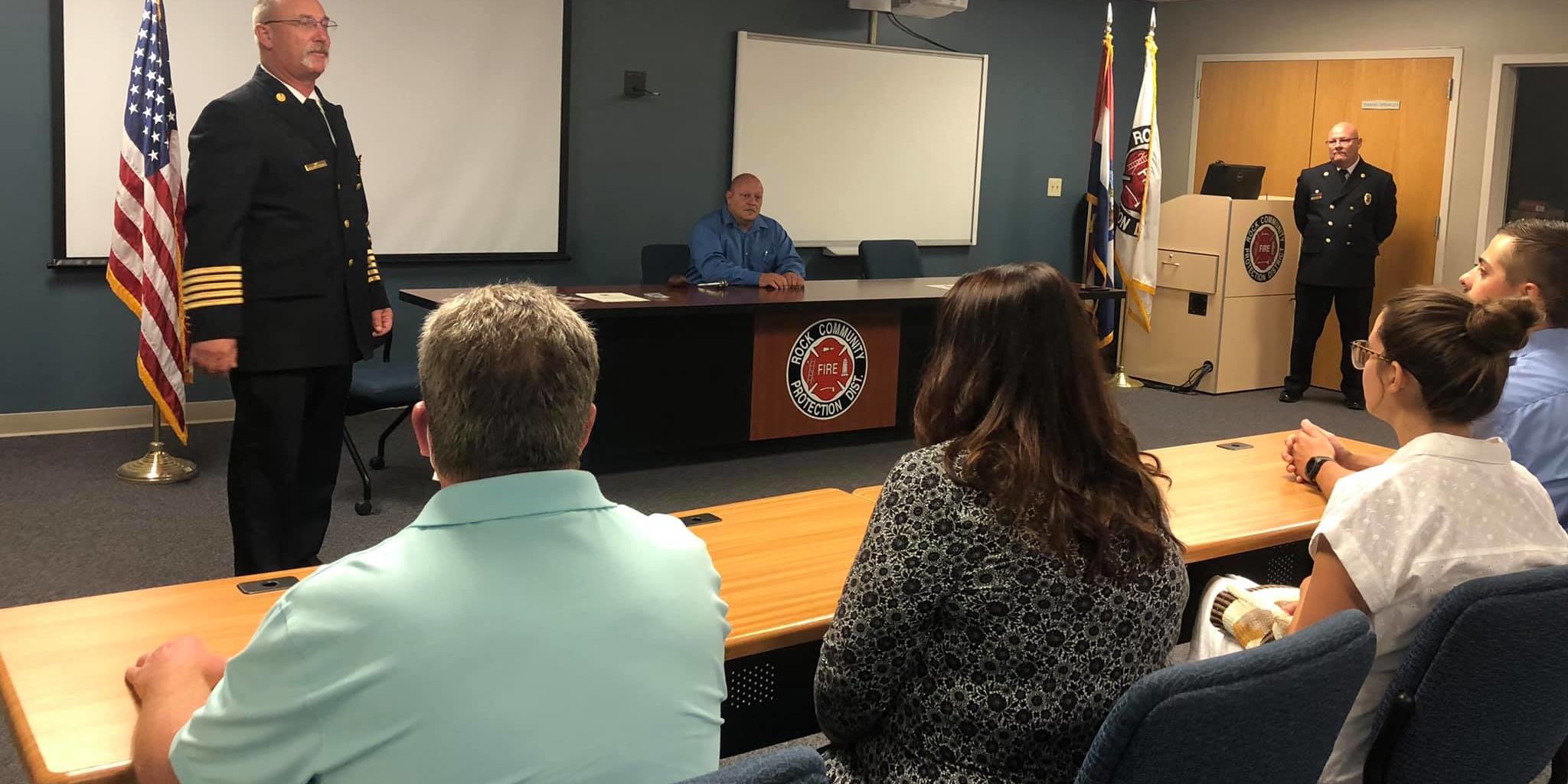 This evening our four newest firefighters were swore in and had their badge pinning ceremonies. Congratulations to Lane Kristen Carl, Chris Johnson, Brandon Ham, Jon Rinehart and their families!
